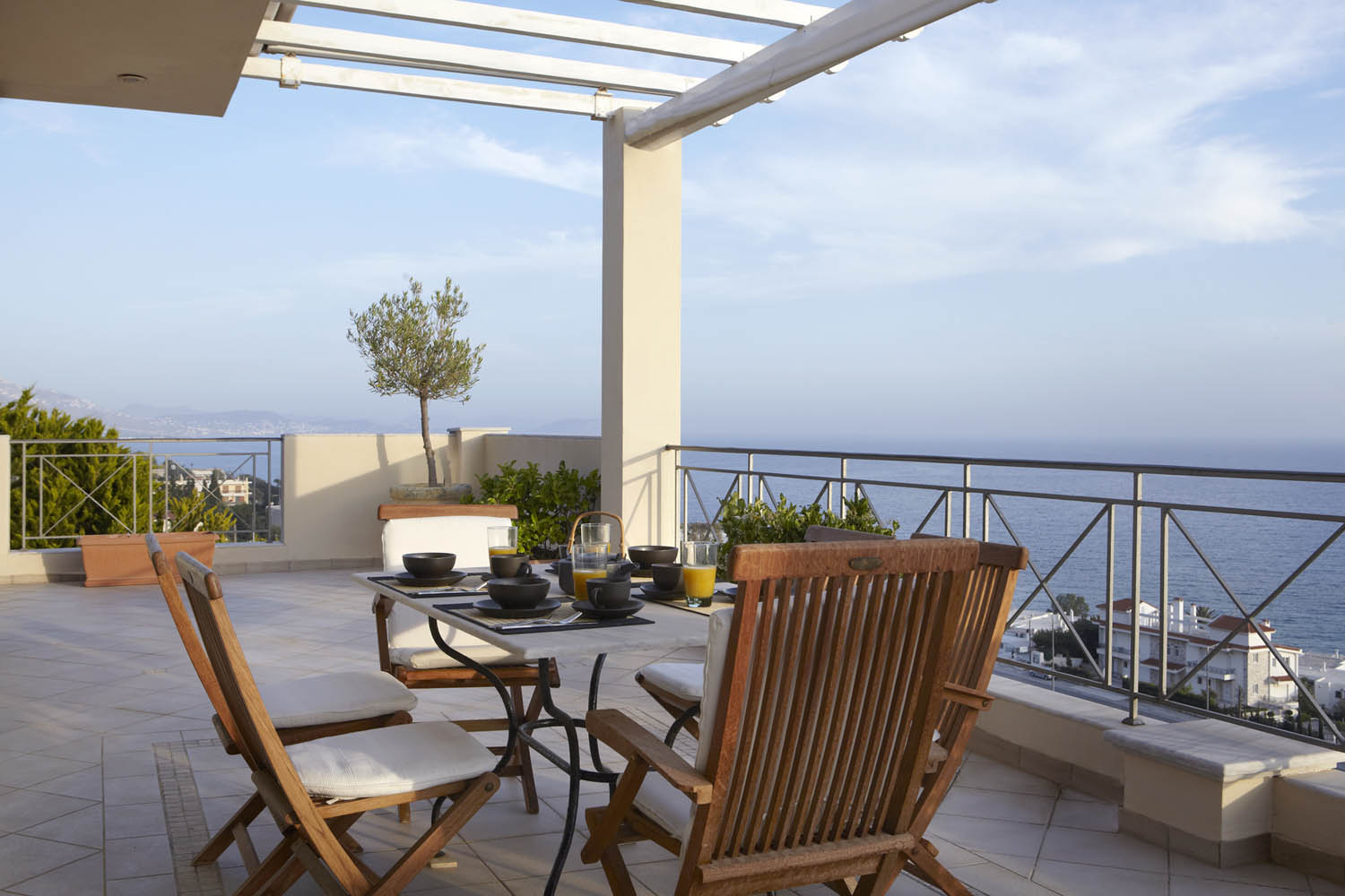 Villa Althea is a luxury 180sqm villa apartment, on the Athens Riviera coastline, accommodating up to 6 adults in three separate bedrooms. It is available for short term rental, throughout the year. The interior of Villa Althea is tastefully decorated according to a Mediterranean cottage style with soft colors and earthy, bohemian furniture. There are also exquisite, private-like sandy beaches at walking distance from the villa as an attractive alternative.